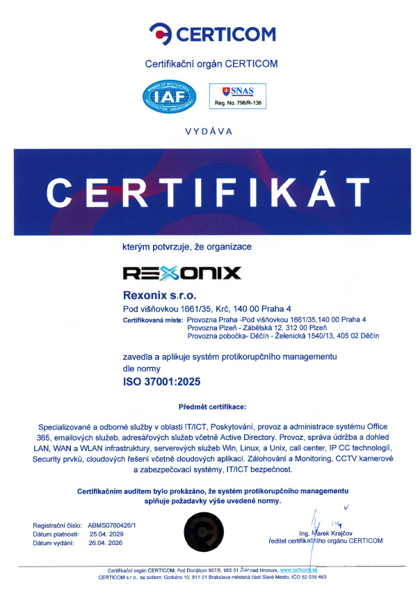V dnešním světě už nestačí „jen“ dělat svou práci dobře. Je nutné ji dělat čestně. Získání normy ISO 37001:2025 je pro nás závazkem, že naše vnitřní procesy jsou odolné vůči korupci a že si vážíme důvěry, kterou do nás vkládáte.